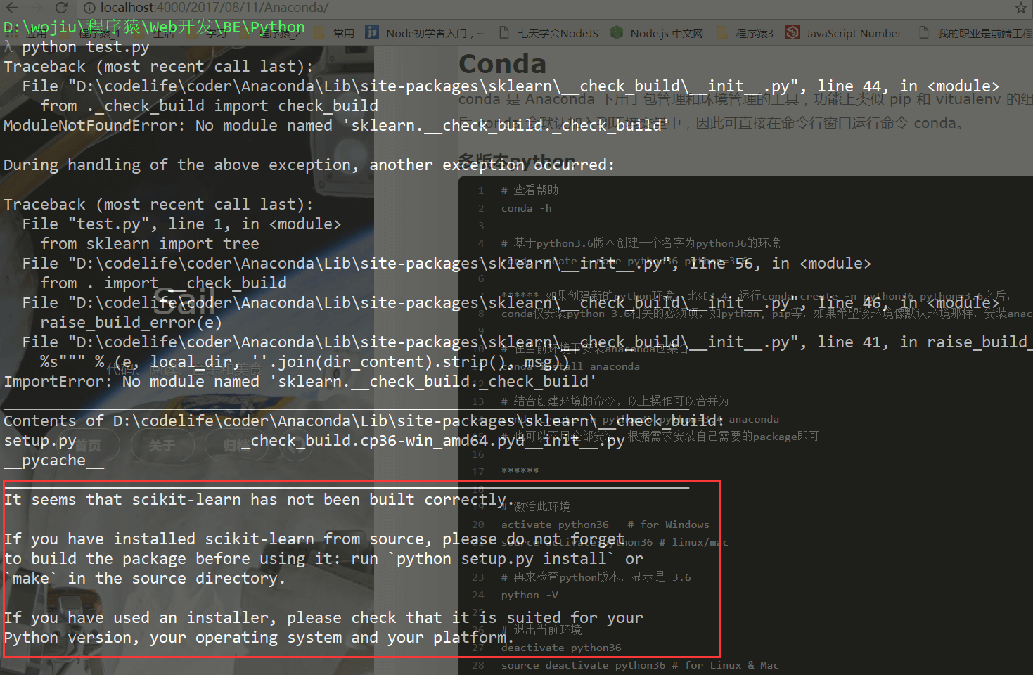 在跑我的第一个机器学习程序的时候,出现了以下的错误